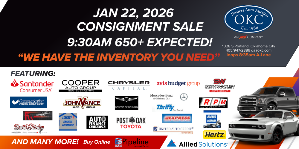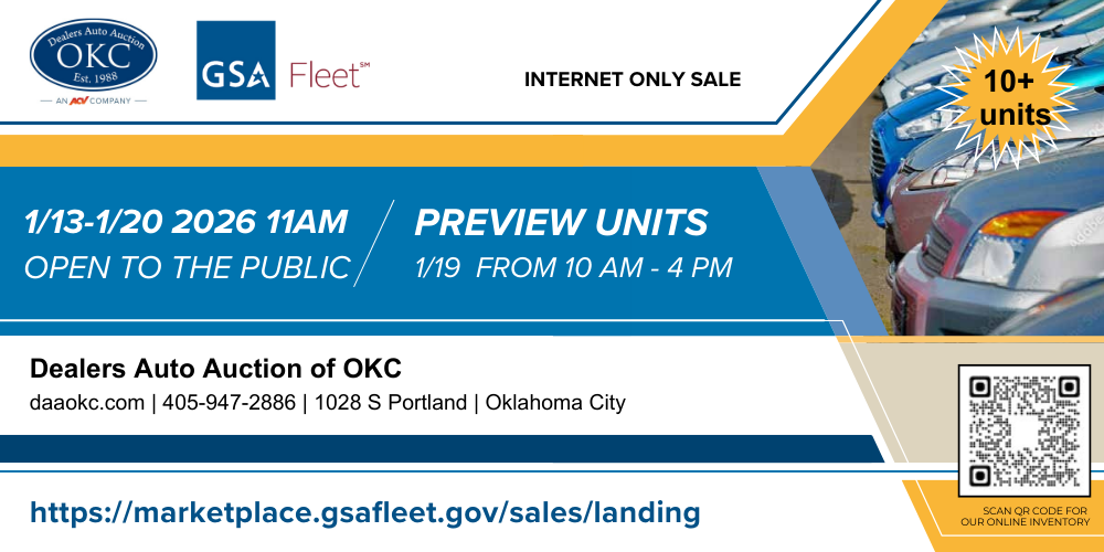 For 30 years, DAAOKC has been the trusted source for dealers, consignors and GSA public auction in Oklahoma. We are a full-service auction facility, featuring thousands of cars, trucks, fleet units and specialty vehicles along with financing and on-site vehicle prep and repair.
